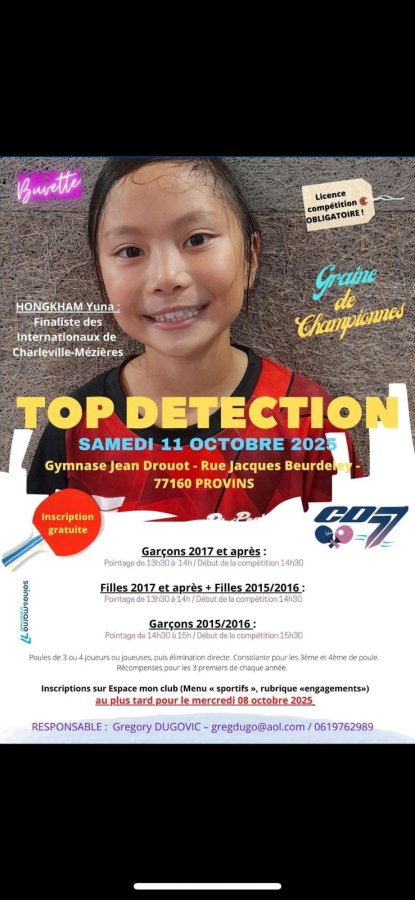 Ce samedi 11 octobre 2025, pour le premier tournoi jeune de l'année, les pongistes du SCGT Tennis de table étaient au tournoi TOP Détection.